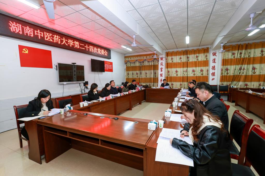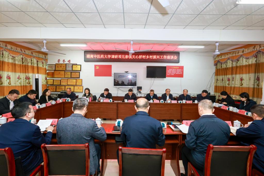 为将调研成果高质量转化为具体帮扶决策,学校第二十四次党委会在天心桥村党员活动室召开。与会的校领导班子成员一一结合此次实地调研的真切感受与学校历年帮扶的经验思考,专题研讨乡村振兴工作关键议题,并就《湖南中医药大学乡村振兴帮扶工作实施方案》开展集中审议。大家以“现场办公、就地决策”的务实作风,逐一环节校准帮扶方向、细化举措,确保帮扶规划与天心桥村的发展需求、村民的实际期盼精准对接、同频共振。